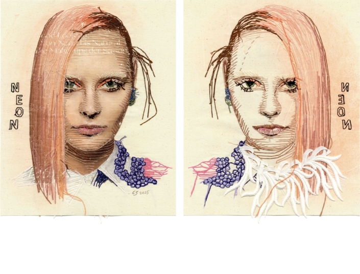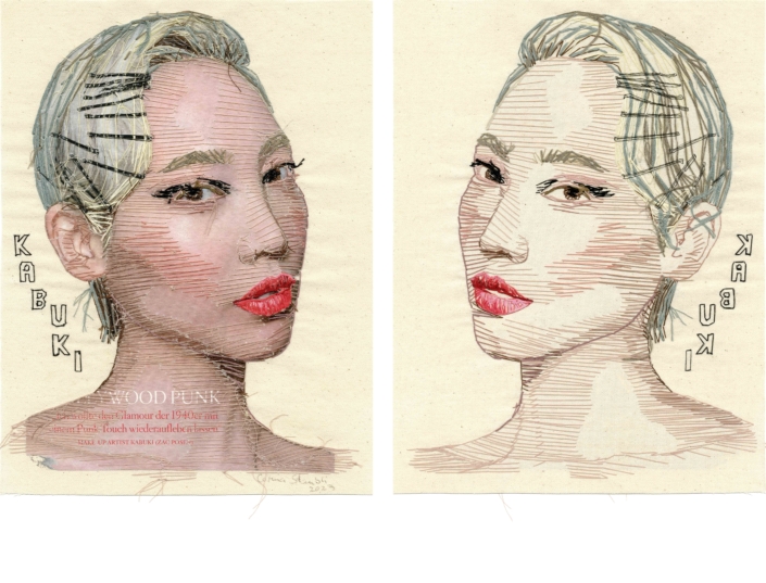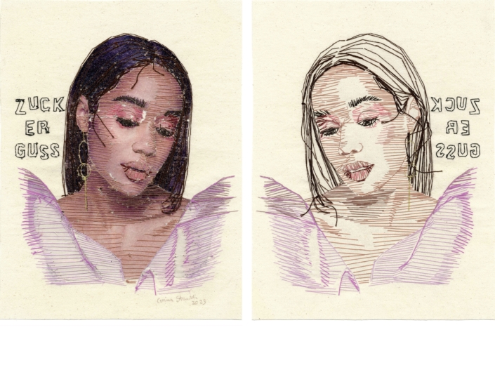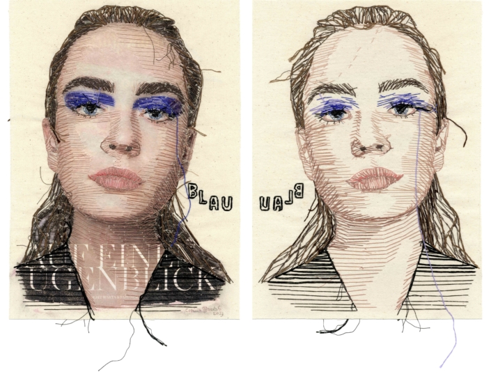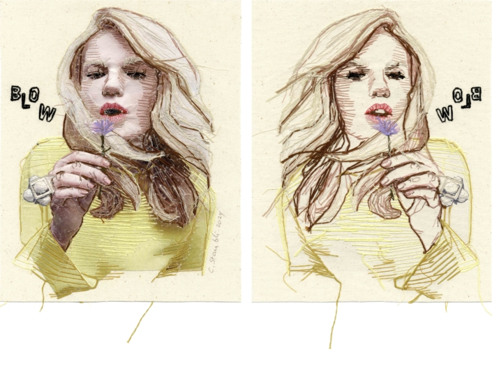 In der Werkserie DRIFTS macht sich Corina Staubli auf die Suche nach den verborgenen Seiten und Facetten von Menschen, nach dem, was zum Vorschein kommt, wenn die glatte Oberfläche quasi «gestört» wird. Diese Störungen provoziert sie mit dem Medium Wasser, so dass die plakativen Frauengesichter verzerrt, aufgelöst und fragmentiert werden. Auf unkontrollierte Weise tauchen neue Gesichter und Aspekte der Persönlichkeit auf. **